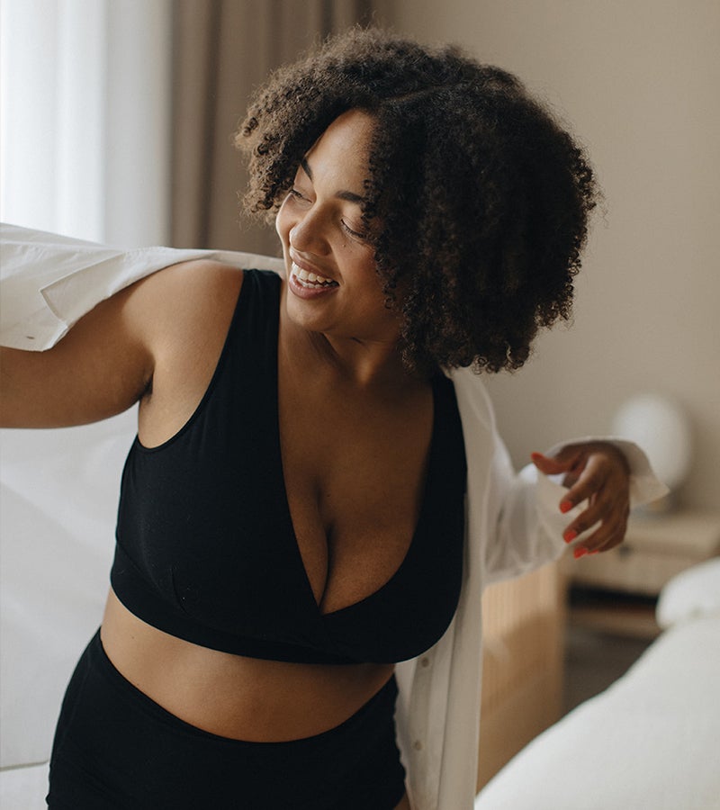 Kies bij voorkeur een rekbare en flexibele seamless-bh zonder beugel, dan voorkom je schurende naden. Iets dat misschien extra belangrijk is als je de bh draagt wanneer je 's nachts voedt.
